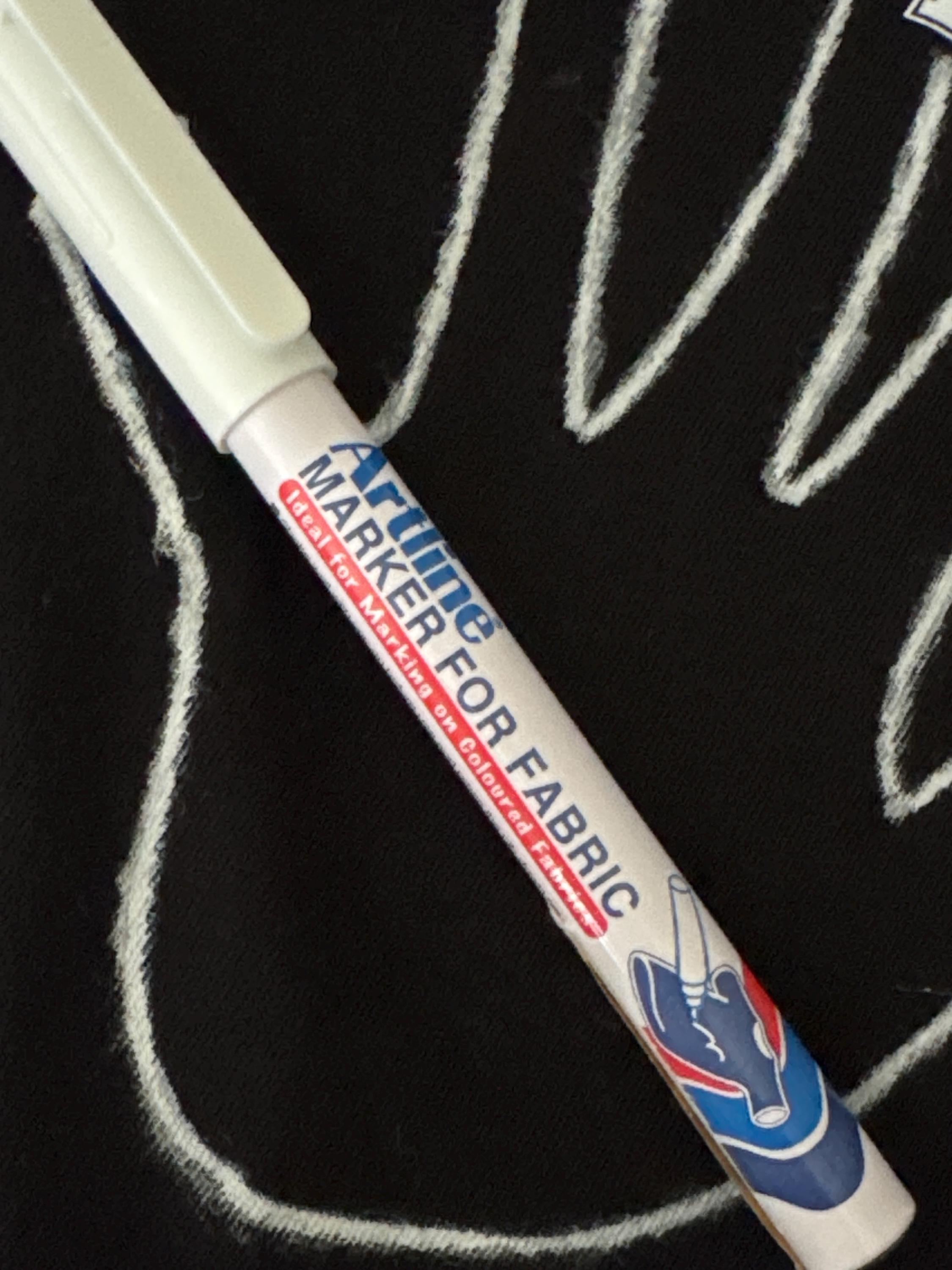 I had to go over my writing multiple times for the white pen to mark acceptably on my dark fabric. Ultimately, it was still a bit watery but served my purpose well enough.