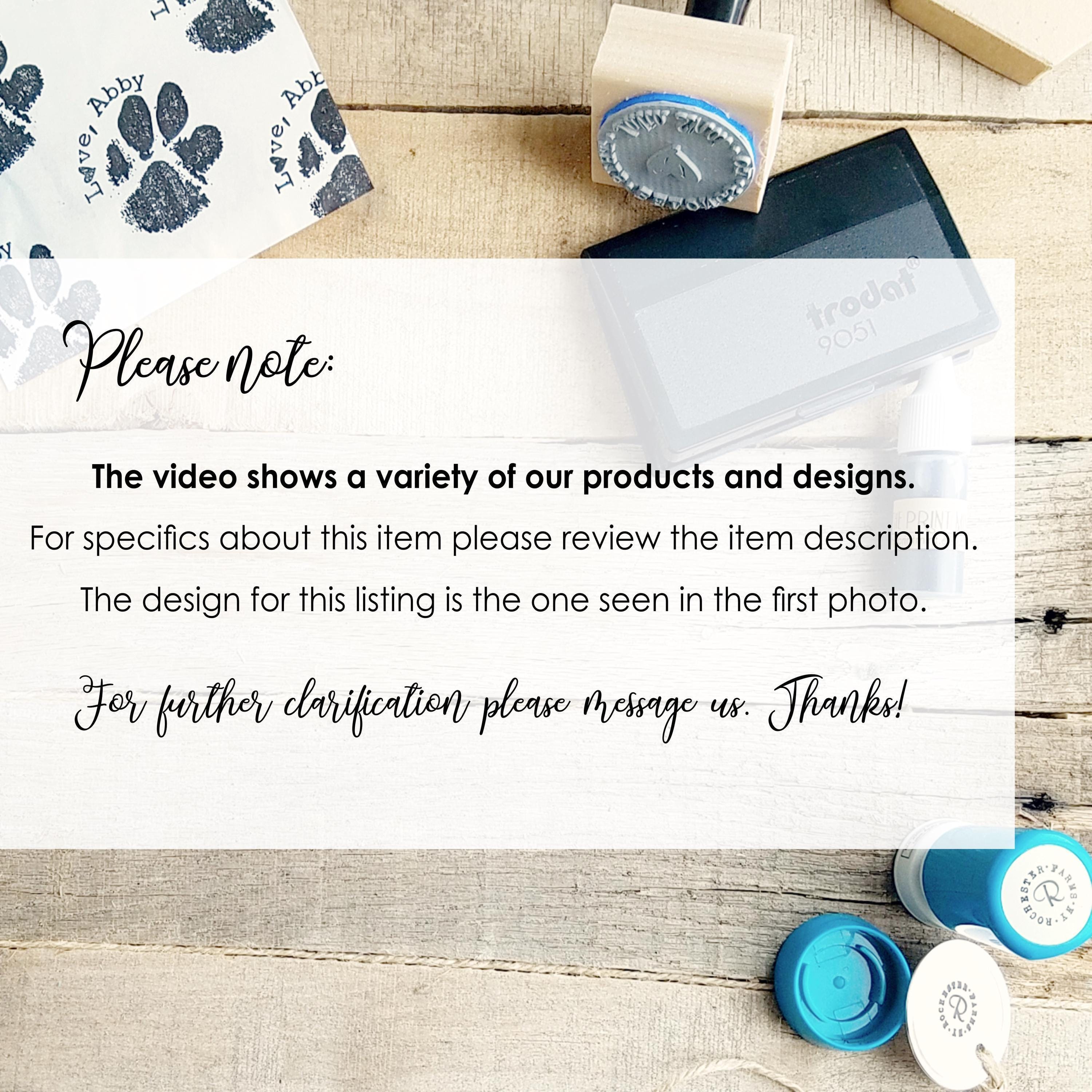 - Please order the size that is closest to the size you want your stamp impression. If we do not offer the size you want your impression to be please request the exact dimensions in the notes at check out.