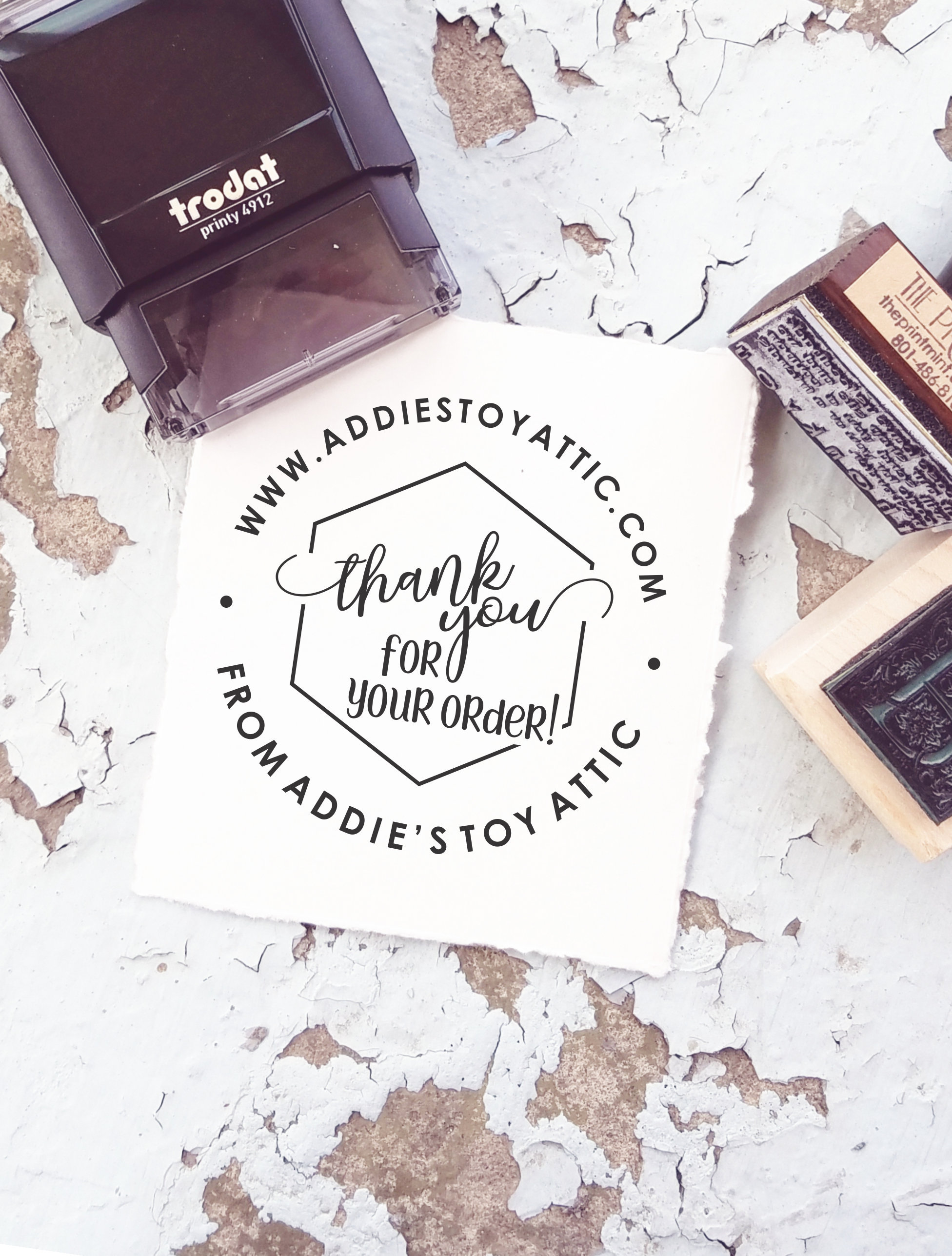 Thank You For Your Order Stamp is a way to personalize each order. Customize the stamper with your business name and web address.