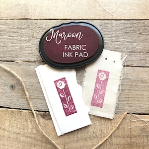 - Fabric ink stamp pad: any surface, heat-setting required for permanence on some surfaces
